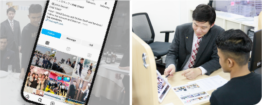 Instagramを活用した新しい募集・研修システムを導入しています。またホテル単位、業種単位での実技、学科研修を行い、専属メンバー構築を目指しています。