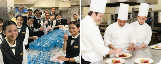 特に評価の高い人材を、オンシフト(レギュラーメンバー)として宴会やレストランの各部門(サービス、キッチン、物販)に配置します。